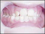 | Der Schneidezahn 21 ist nach hinten gekippt (retrudiert**) und steht im Kreuzbiß. |